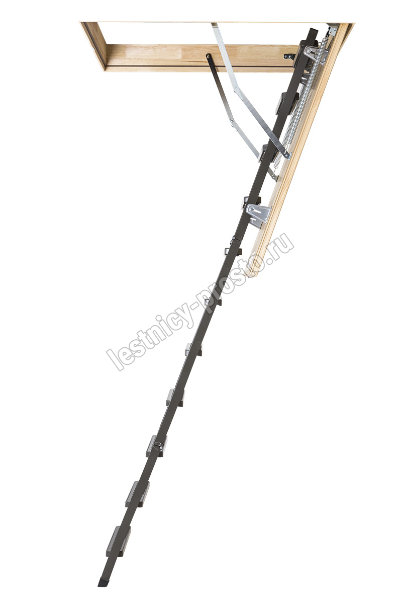 Герметичность всей конструкции достигается благодаря утеплению крышки люка и контурному уплотнению по периметру, что предотвращает возможные теплопотери. Чердачную лестницу очень легко разложить и сложить благодаря наличию специального стержня с четырехугольной насадкой. Установленные в лестнице угловые петли-шарниры нового образца придают ей высокую прочность и надежность, а также предохраняют короб от возможной деформации. Основное преимущество чердачной складной металлической лестницы LMS сводится к ее небольшим габаритам при сохранении высокой функциональности, прочности, надежности и эстетичности конструкции. Монтировать лестницу очень просто, для этого не придется затрачивать много времени и сил. Применение лестничной конструкции этого типа позволяет существенно экономить пространство. Монтажный комплект LXK в комплекте не поставляется.