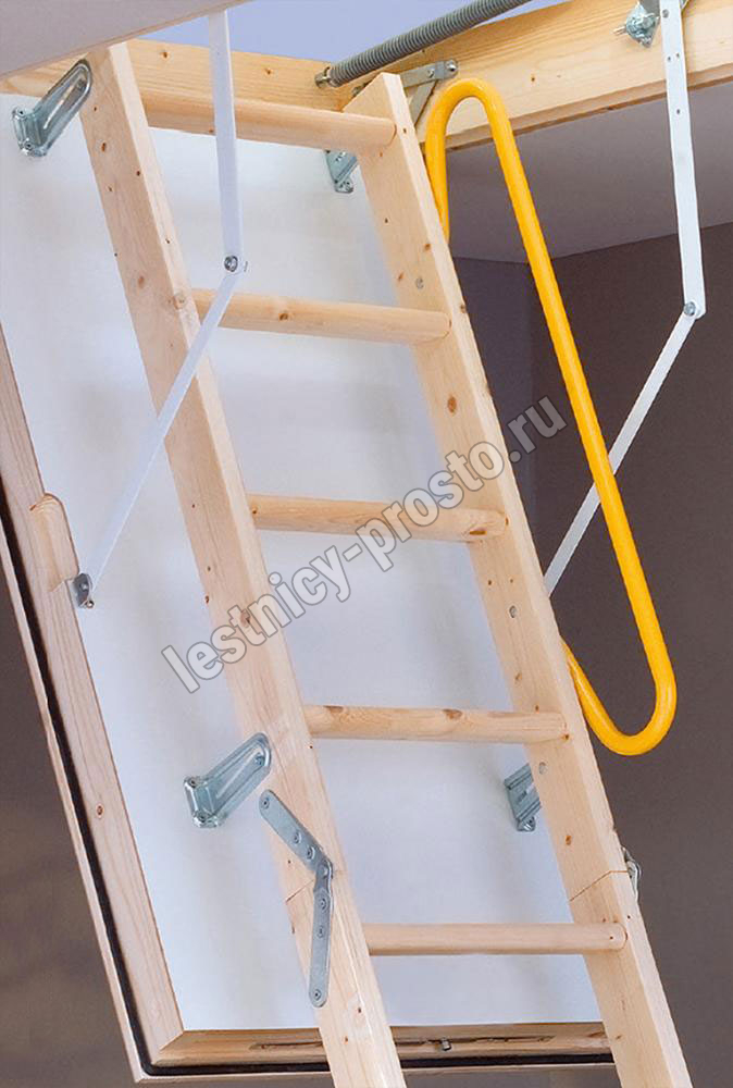 Складная деревянная лестница  из 3-х секций с утепленным изолированным люком идеально подходит для крайне холодных чердачных помещений.