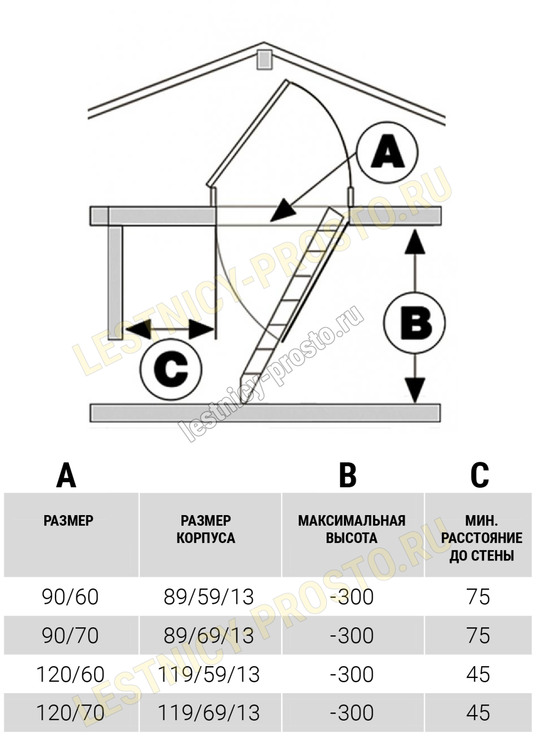 Чердачная ножничная лестница MINKA ELEGANCE 70×120 см, h-300 см