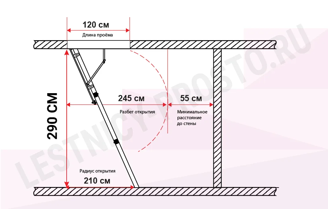 С помощью дополнительных секций (покупаются отдельно) базовую высоту лестницы можно увеличить до 3150 мм. или до 3400 мм.