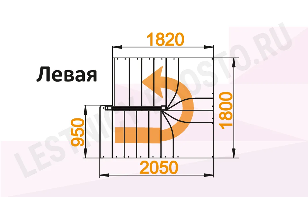Схема лестницы К-033М с поворотом налево