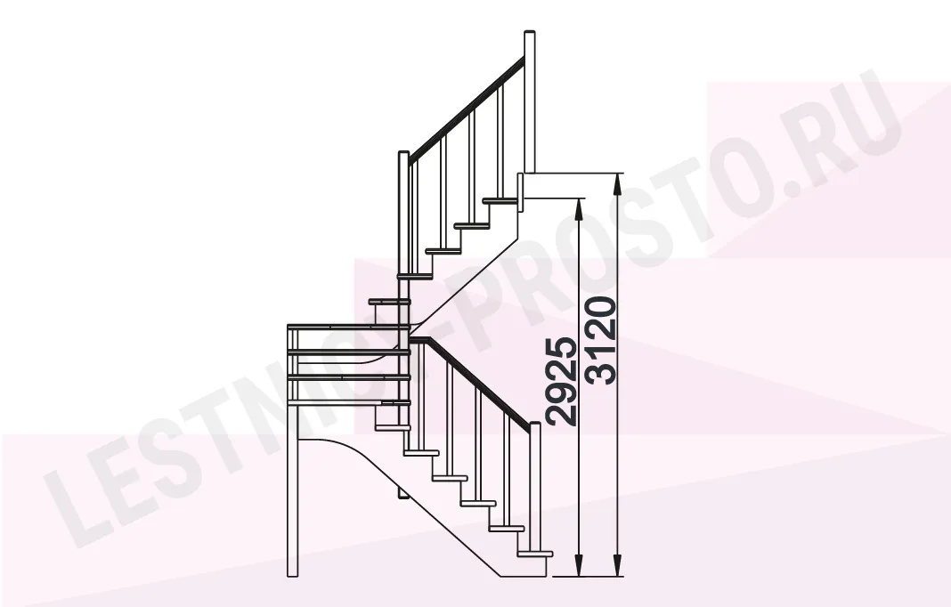 Лестница К-033М с поворотом налево