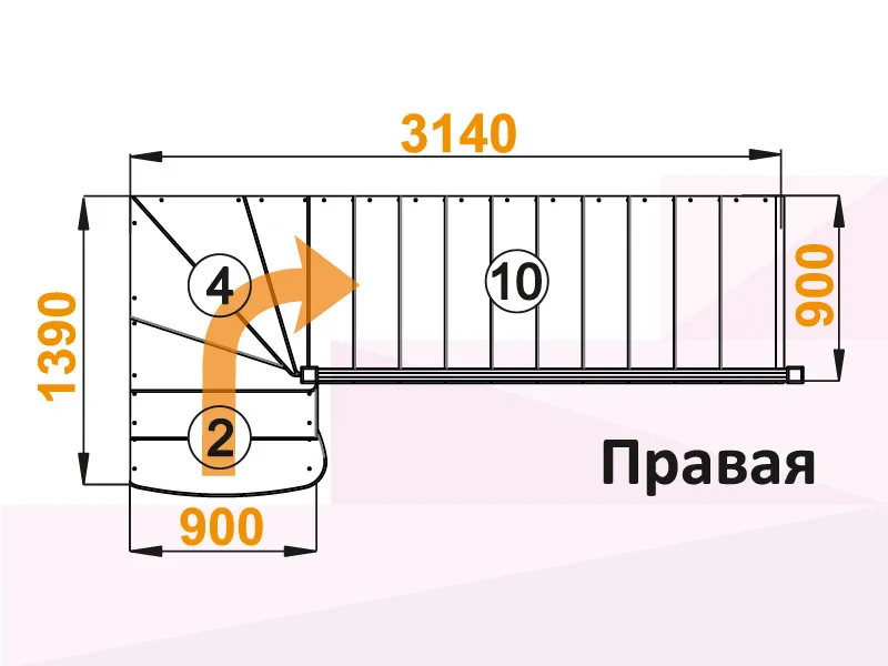 Лестница К-001М/5 с поворотом направо