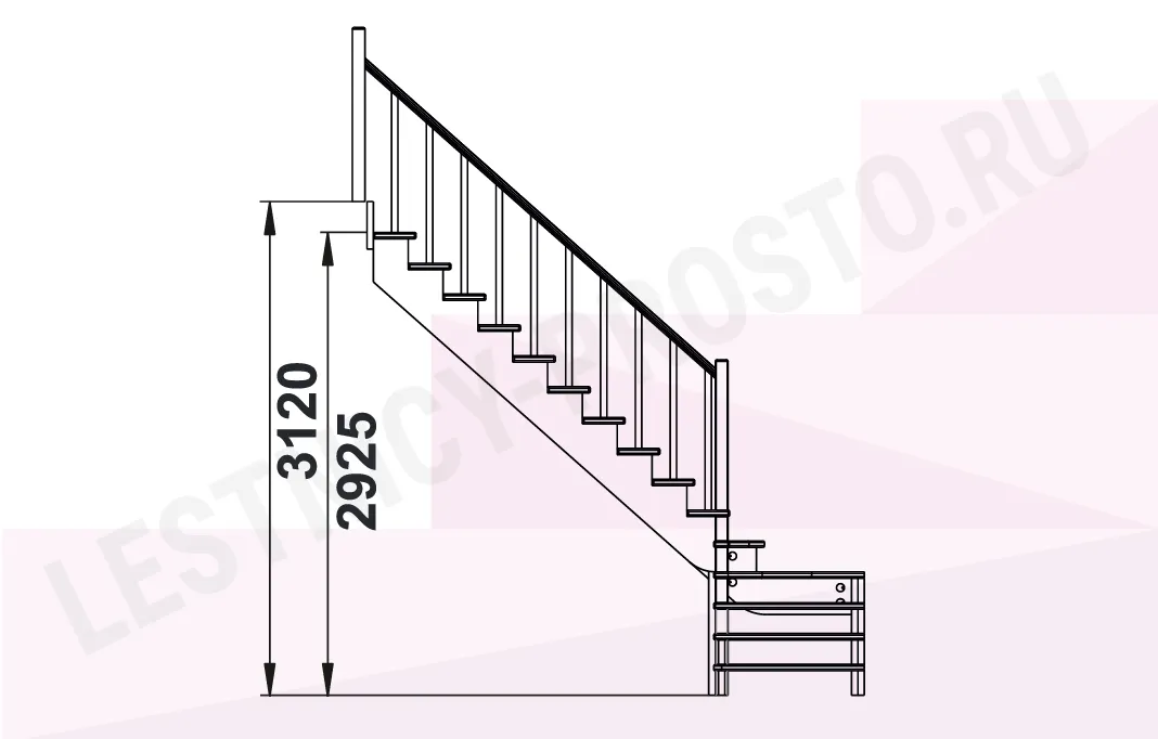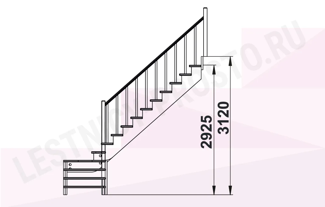 Базовый комплект включает в себя деревянные элементы лестницы и ограждения без какого-либо покрытия.