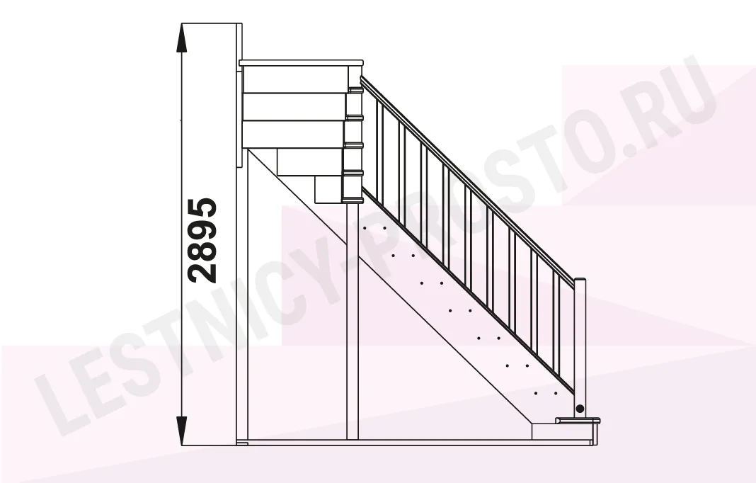 Ступени и поручень лестницы изготовлены из дуба, остальные элементы из сосны.