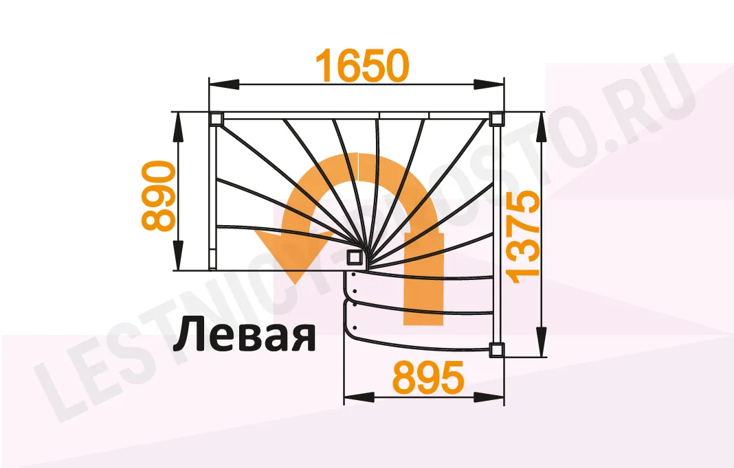 Схема лестницы ЛС-01М с поворотом направо