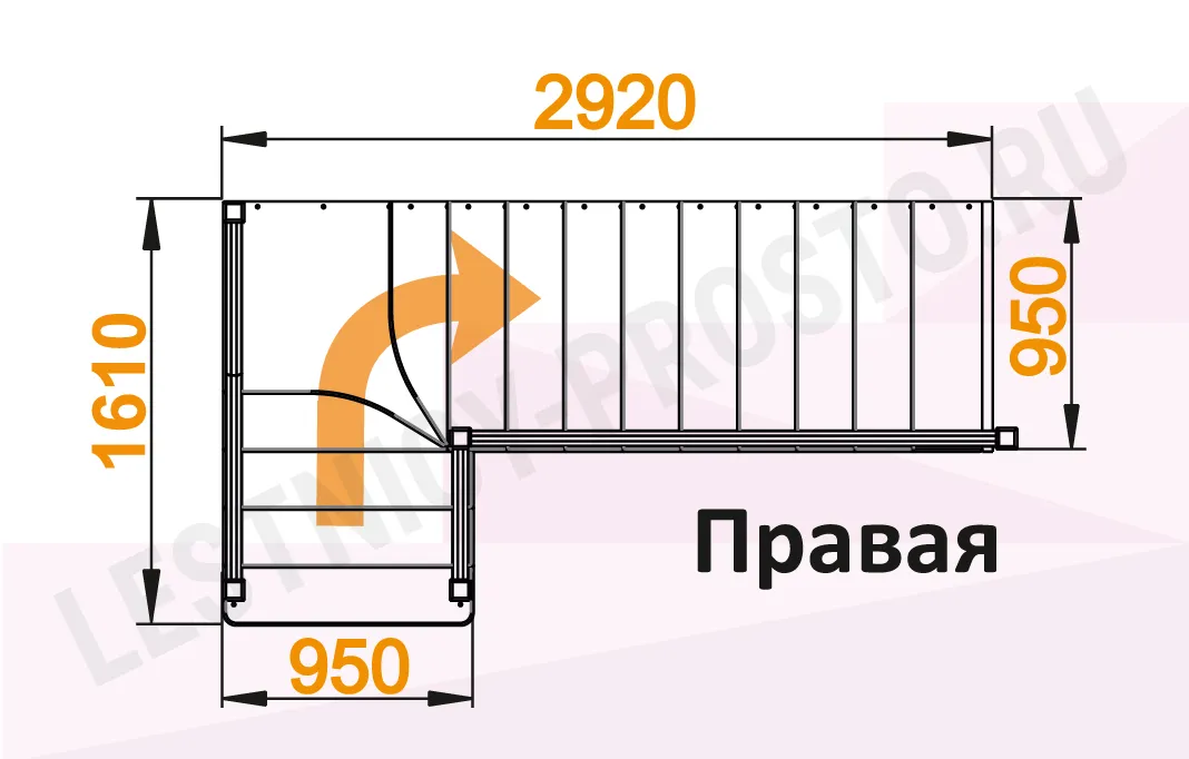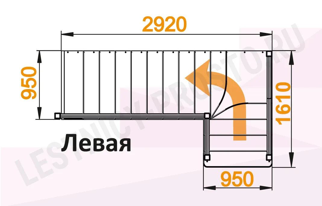 Базовый комплект включает в себя элементы лестницы и ограждения без какого-либо покрытия.