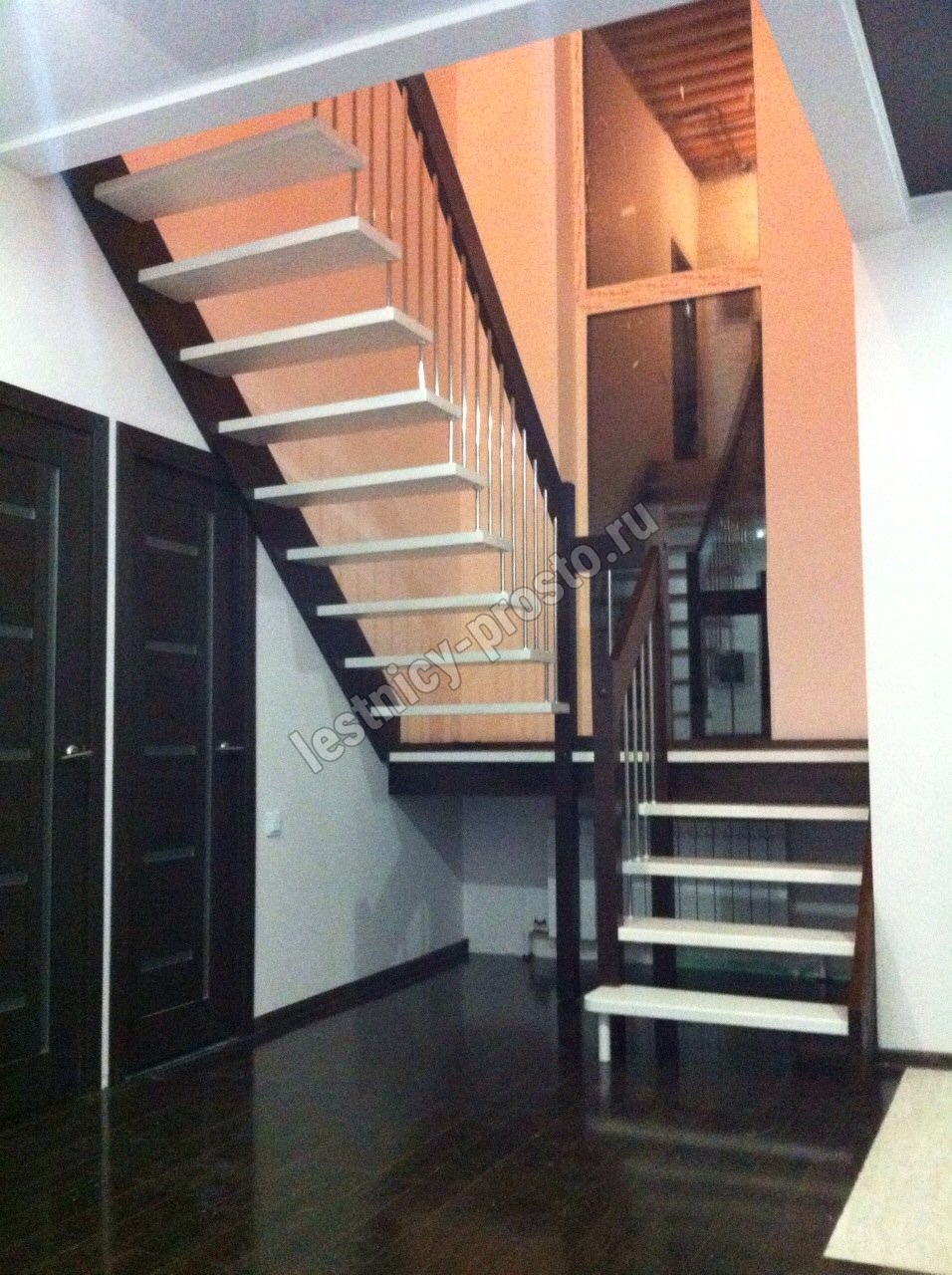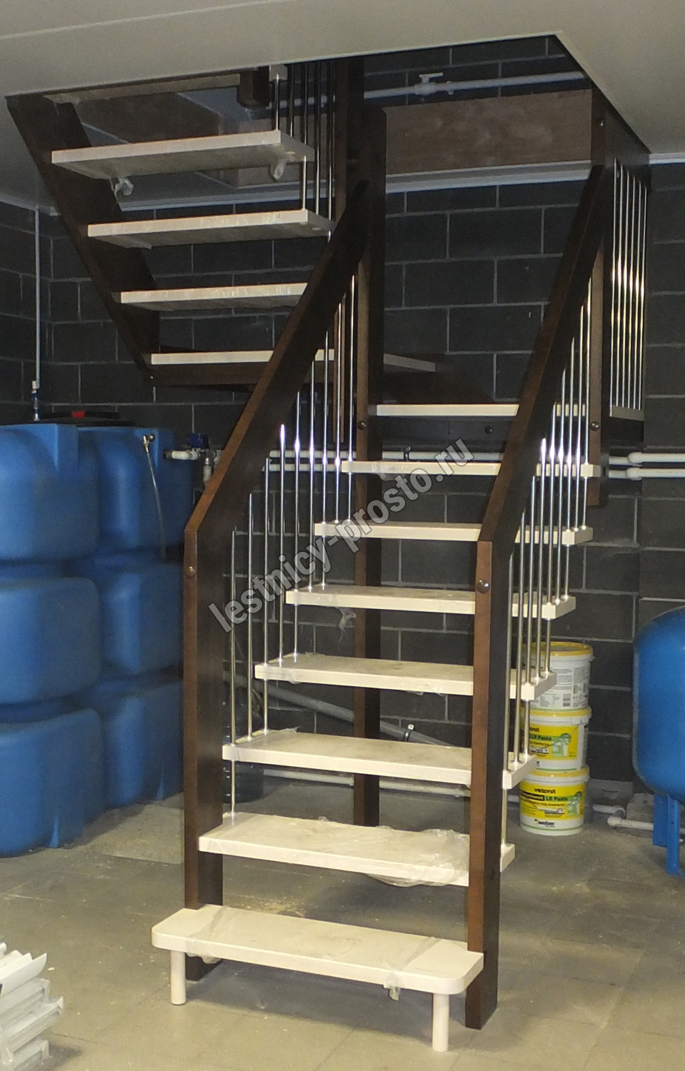 возможна комбинированная лестница: из сосны (ступени бук, ясень, дуб);