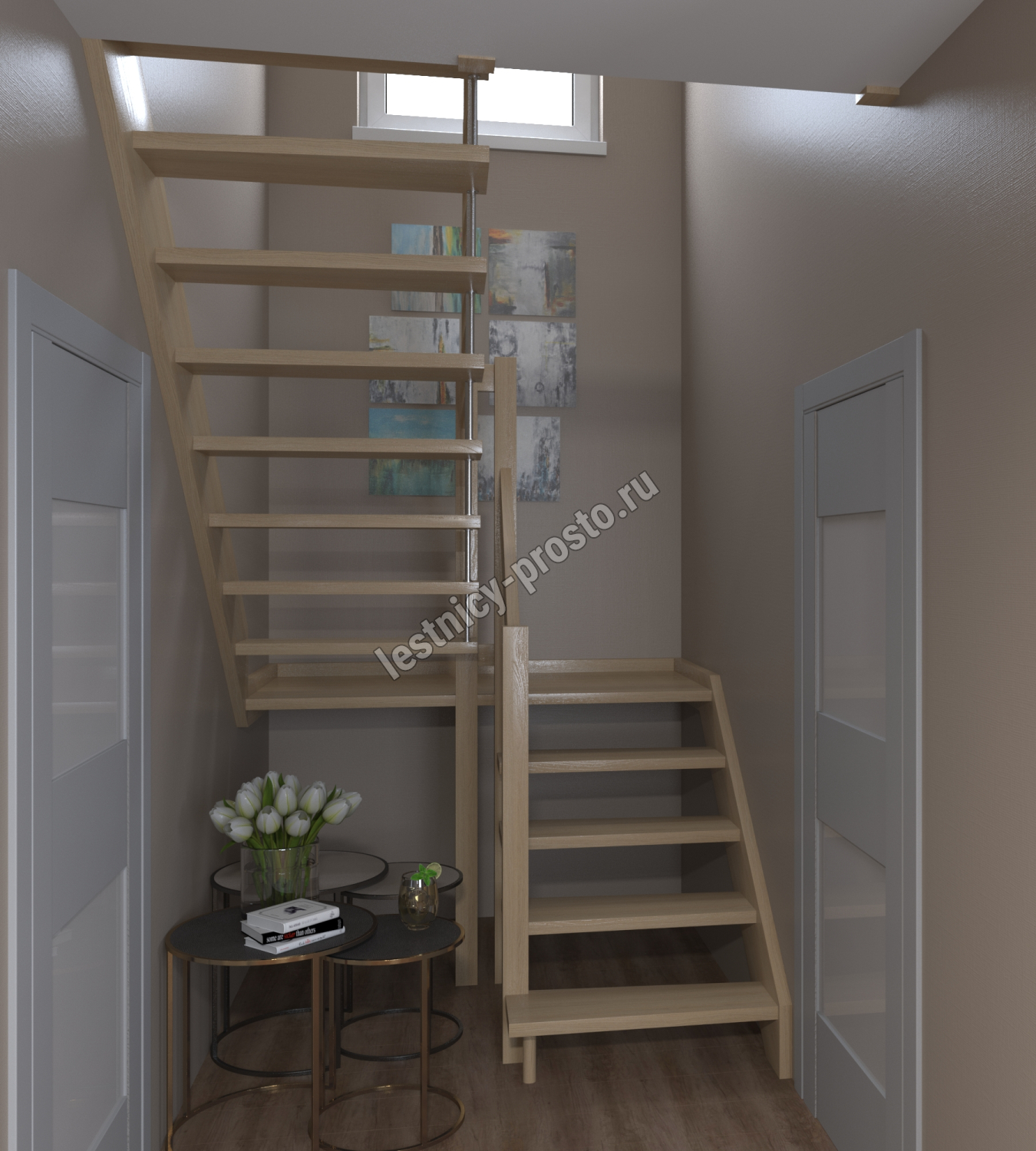 Лестница Prosto Console п-образная забежная, ясень h300 см
