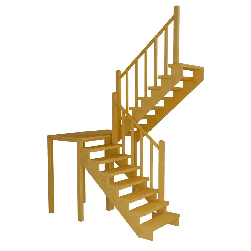 Надёжная современная лестница выполнена по немецкой технологии. Стоимость указана для лестницы с ограждением (с одной стороны); Поставляется в разобранном виде, в комплекте необходимый крепёж; Лестницу можно собрать самостоятельно; Так же, вы можете заказать услугу монтажа нашими специалистами; 4 вида породы дерева для изготовления лестницы: сосна, бук, ясень, дуб; возможна комбинированная лестница: из сосны (ступени бук, ясень, дуб); Деревянные элементы без какого-либо покрытия, отшлифованы, готовы к покраске. За дополнительную плату, вы можете изменить любые параметры, а именно: увеличить глубину ступени; увеличить ширину марша до 900 мм. и выше; заказать подступенки к лестнице; заказать отделку перекрытия (между 1-м и 2-м этажами); изготовить дополнительный промежуточный марш; заказать ограждение 2-го этажа; покраска в любой цвет или несколько цветов или покрытие защитными средствами; дополнение балясины из нержавеющей стали деревянными элементами; покраска балясин из нержавеющей стали порошковой краской в цвет RAL.