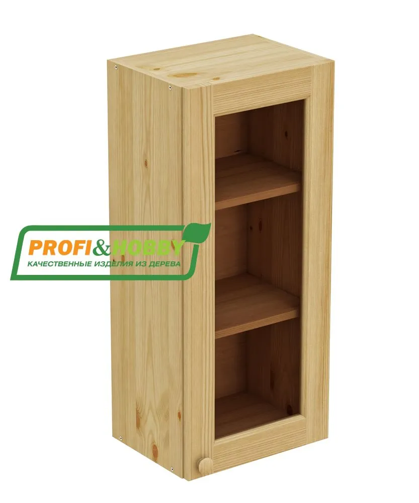 Шкаф навесной 450 х 300 х 900 под стекло, сосна, бесцветный акриловый лак