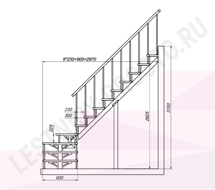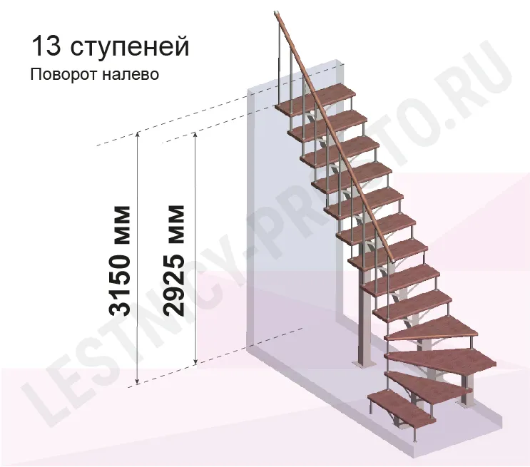 Лестница PROSTO MONO Г-образная h315 см, ступени хвоя