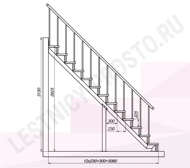 Высота лестницы 2925 - 3150 мм