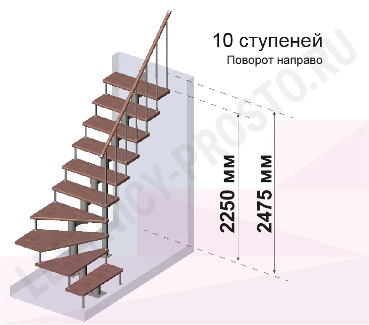 Высота лестницы 2250 - 2475 (10 ступеней) мм
