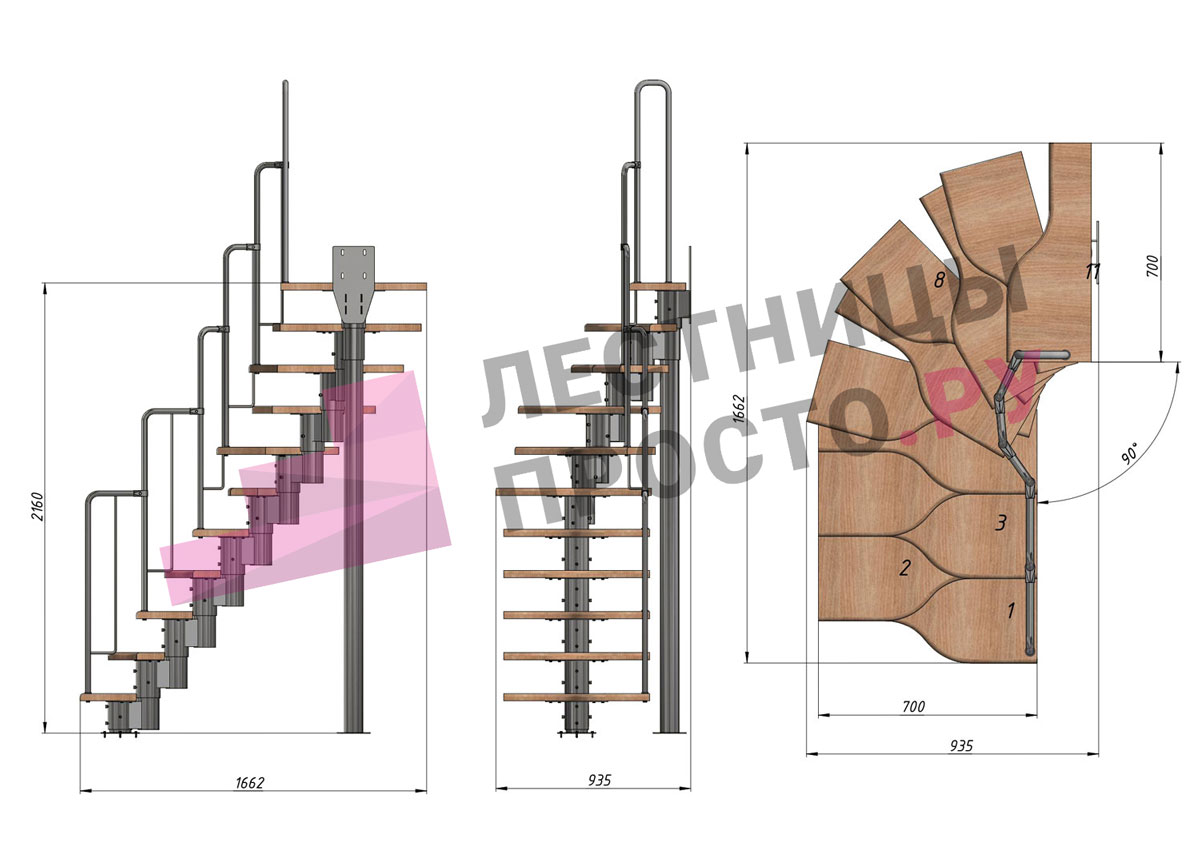 Лестница Prosto Urban Black гусиный шаг 700 мм/Ступени из берёзы мультиплекс