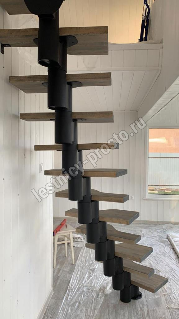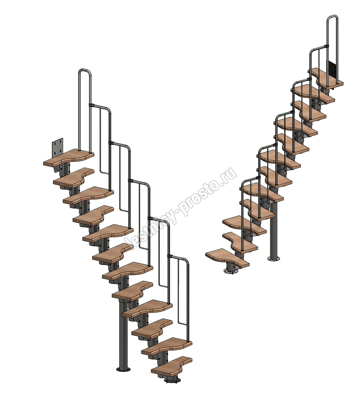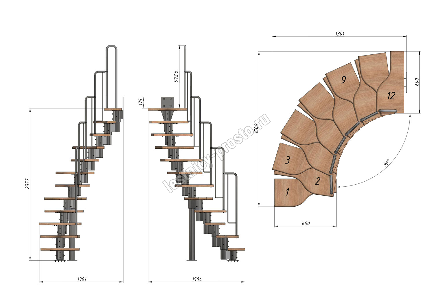 Лестница Prosto Urban Black гусиный шаг 600 мм, h216-312 см (12 ступеней), бук