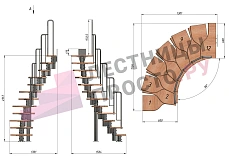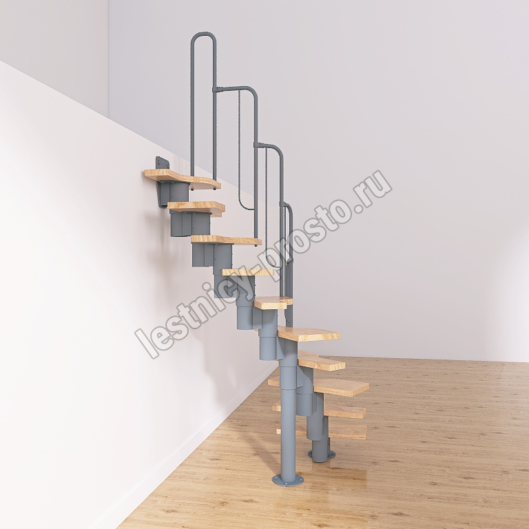 | Лестница Prosto Urban Grey г-образная гусиный шаг 600 мм, h198-288 см (11 ступеней) |