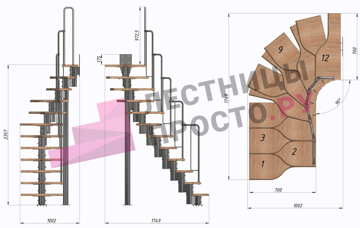 соответствует картинке, но вы не ограничены в его выборе. Лестницу можно приобрести и без ограждения, и с любым другим. Устанавливать на такую лестницу можно почти всё, начиная от классических деревянных балясин и заканчивая эксклюзивными коваными изделиями.