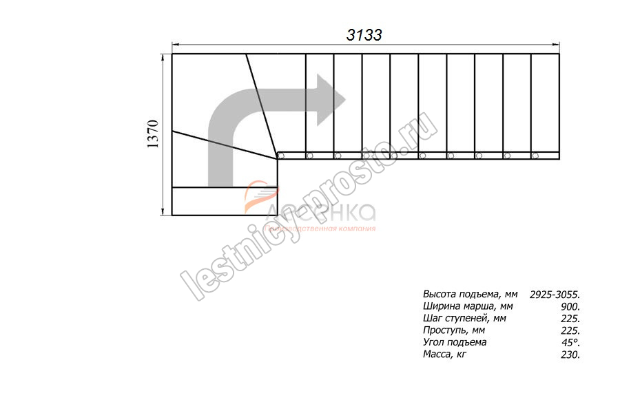 Модульная лестница Фаворит 225 2925-3055, Черный, Бук, Нержавеющая сталь