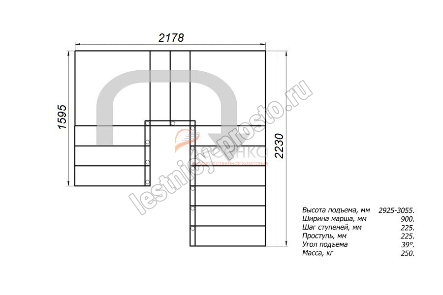 Модульная лестница Комфорт 225 2925-3055, Черный, Бук, Нержавеющая сталь