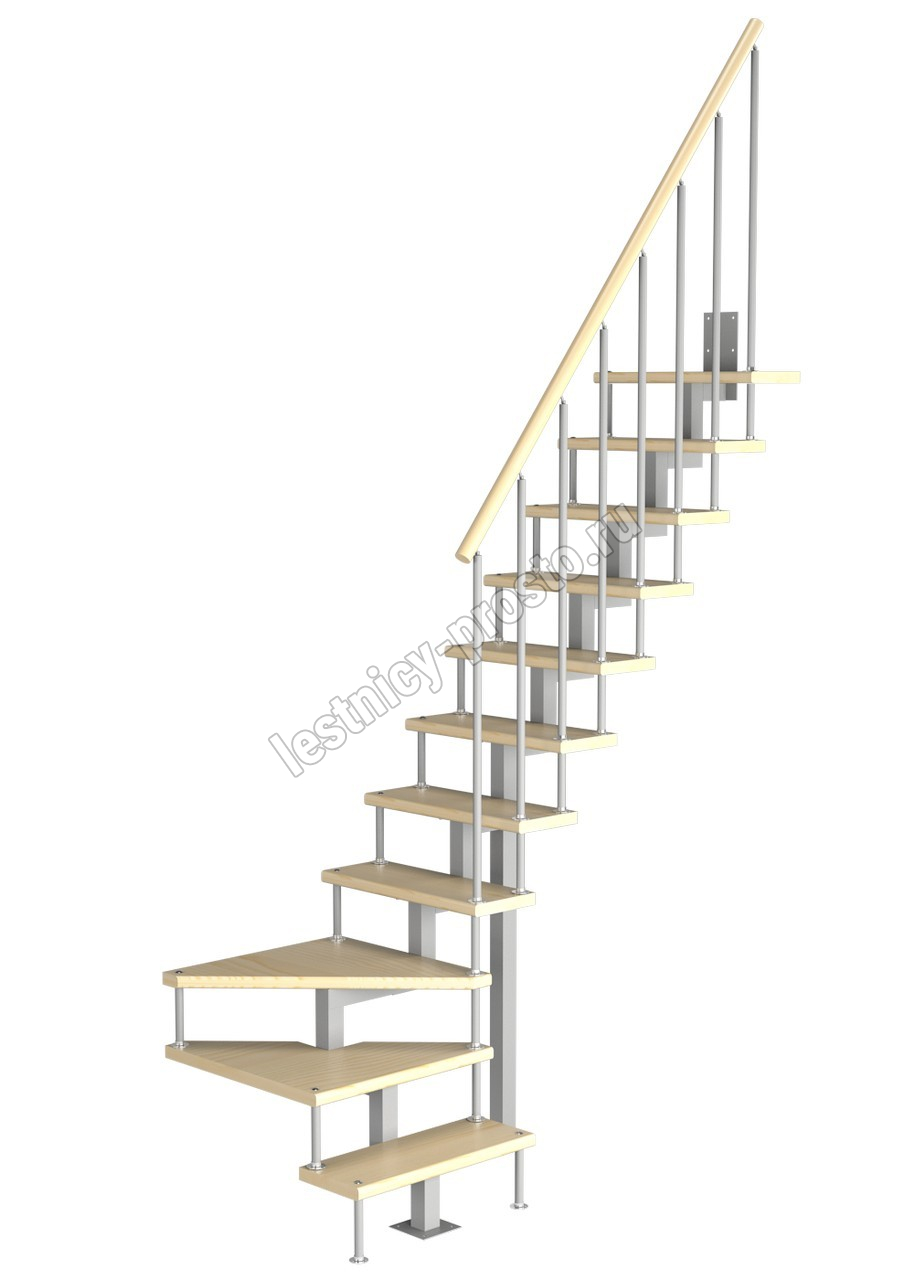 Модульная малогабаритная лестница Компакт 2475-2700, Серый, Сосна, Нержавеющая сталь