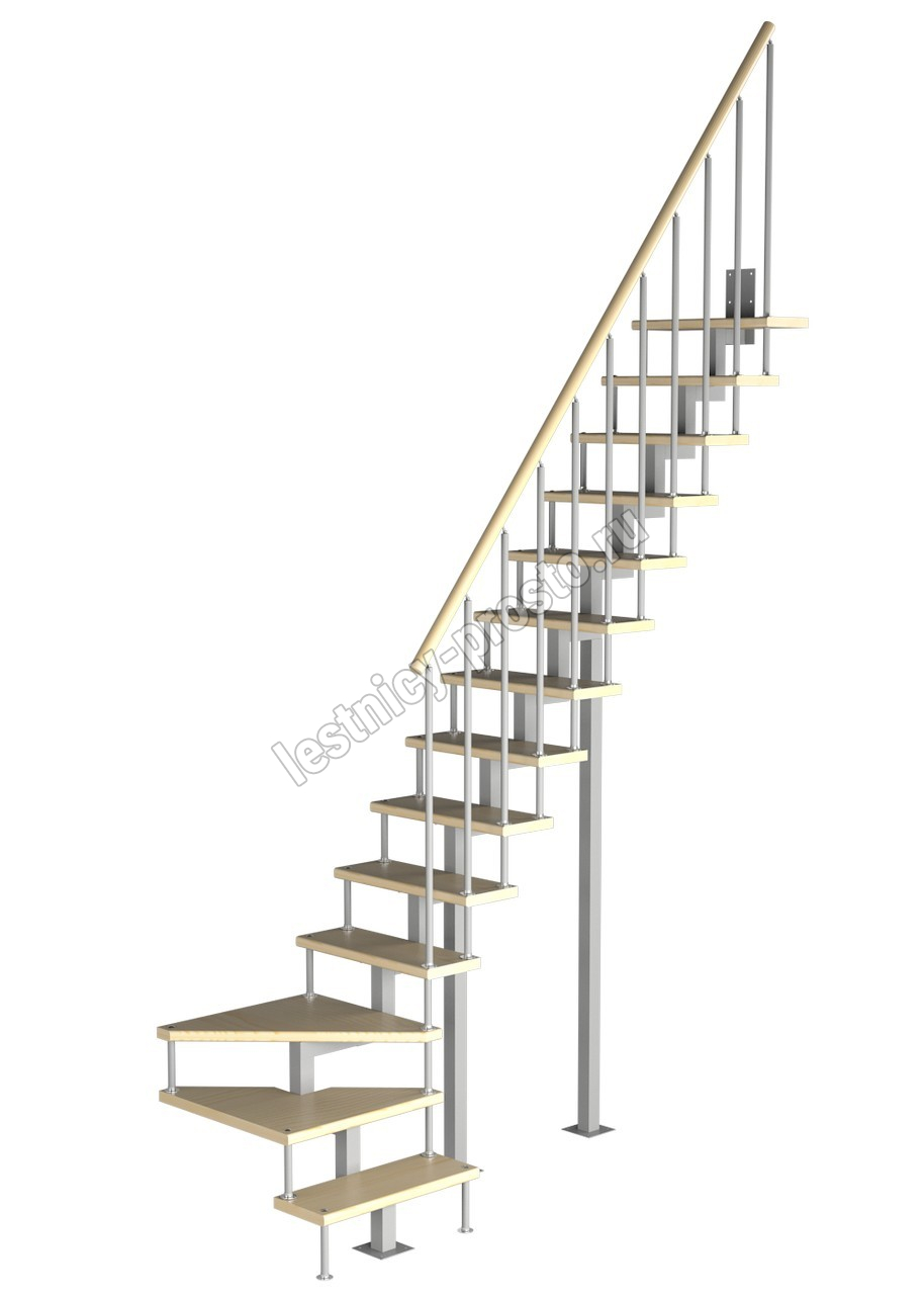 Модульная малогабаритная лестница Компакт 3150-3375, Серый, Сосна, Крашеная