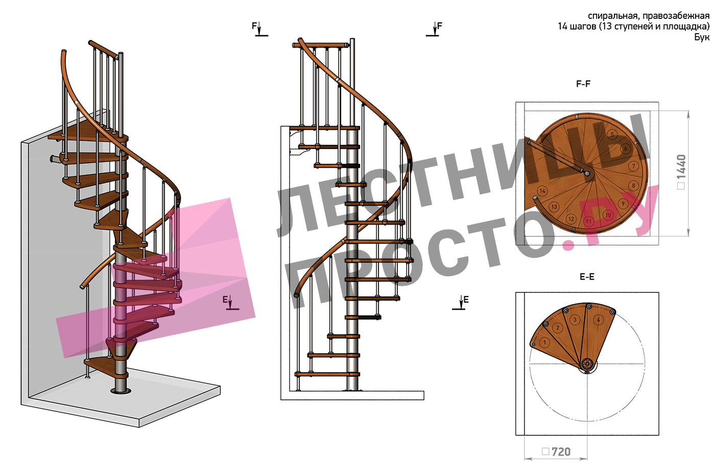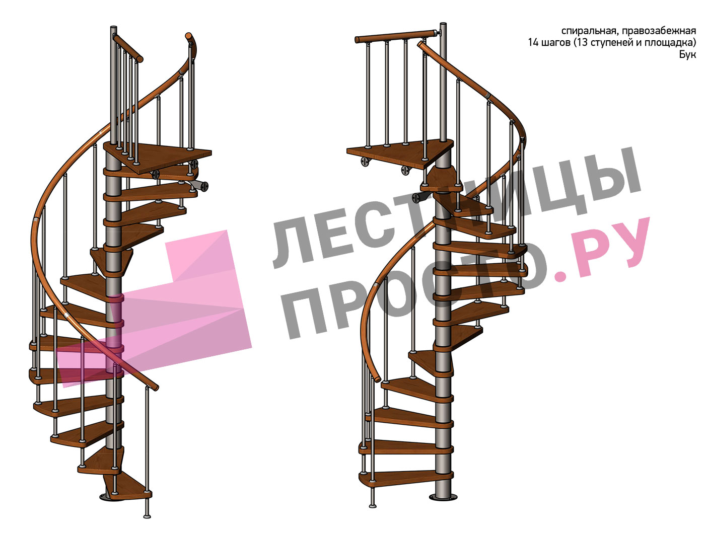 Правая, d=140см, 13 ступеней + площадка