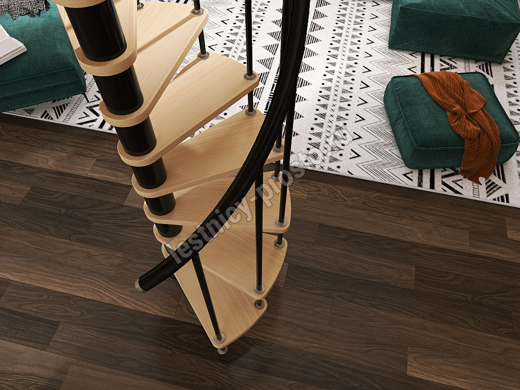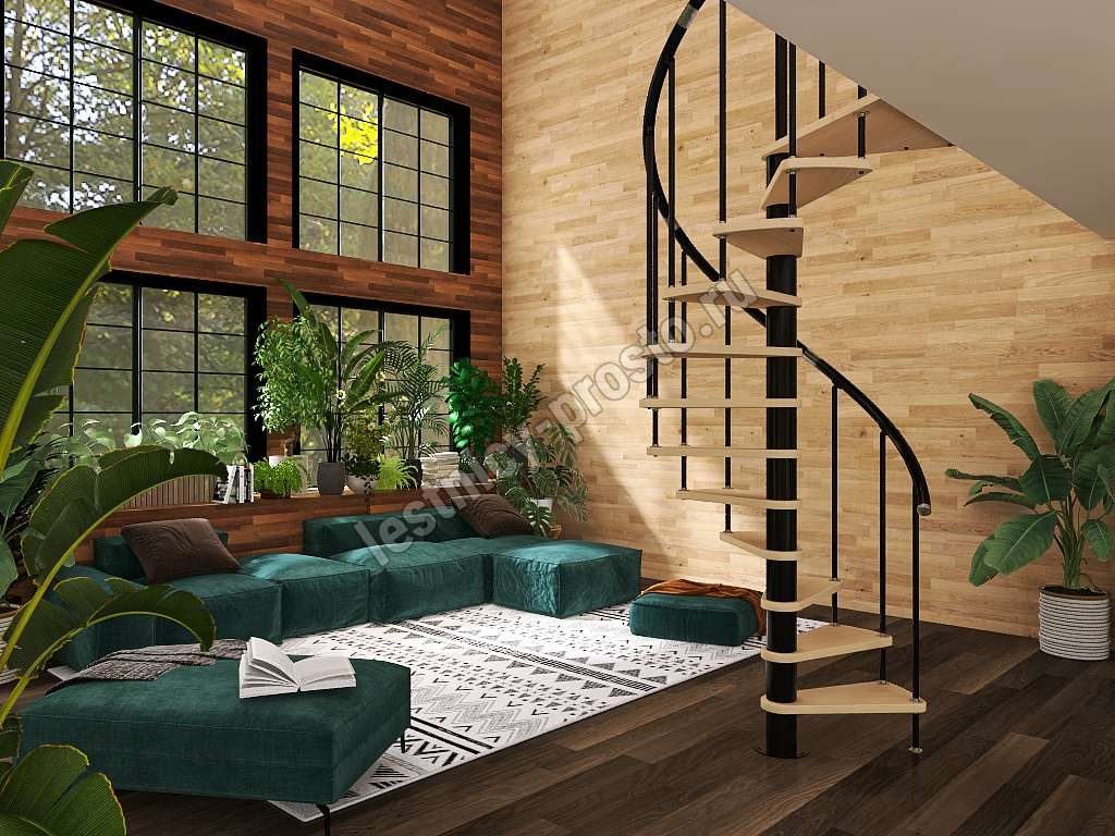 Экономит пространство. Высота ступеней регулируется с шагом 3 мм. в пределах 217-247 мм., благодаря чему, лестница прекрасно подгоняется под необходимую высоту.