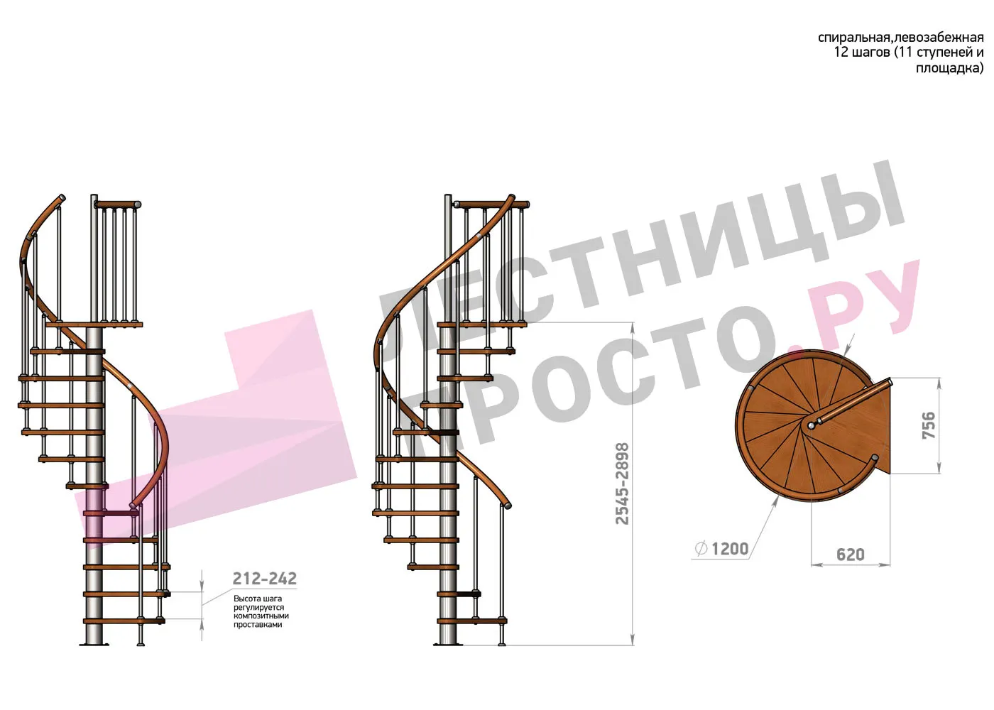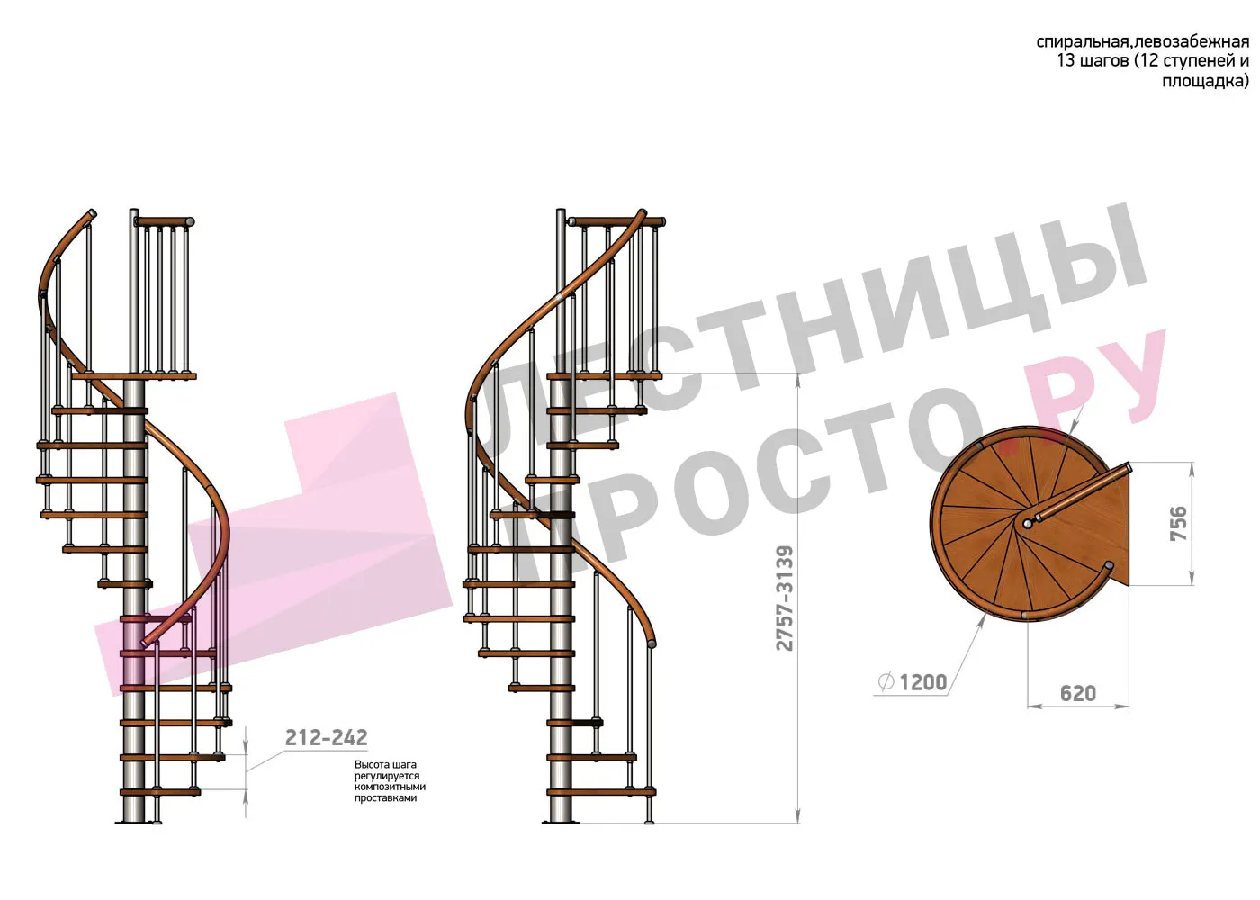 | Винтовая лестница Prosto Spiral Black D120см, h296.9-338.1 см |