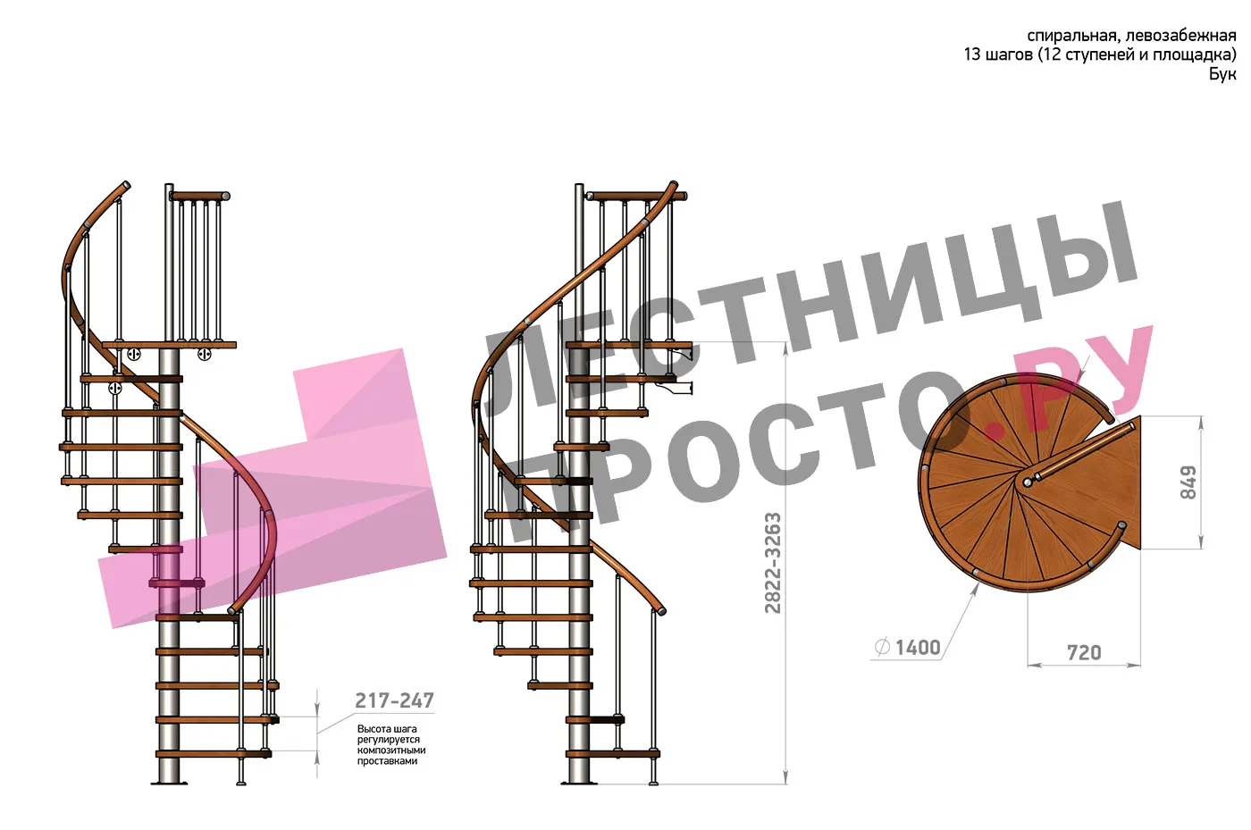 Экономит пространство. Высота ступеней регулируется с шагом 3 мм. в пределах 217-247 мм., благодаря чему, лестница прекрасно подгоняется под необходимую высоту.