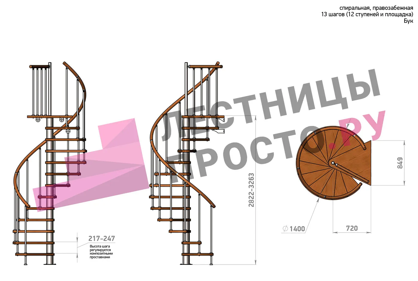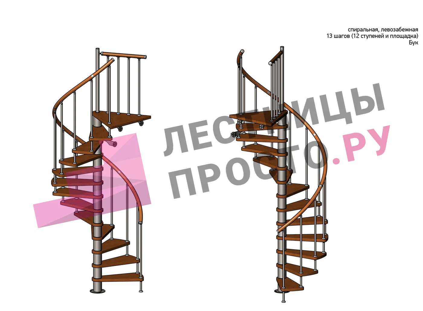 Ширина ступени между центральной колонной и поручнем ≈ 580 мм