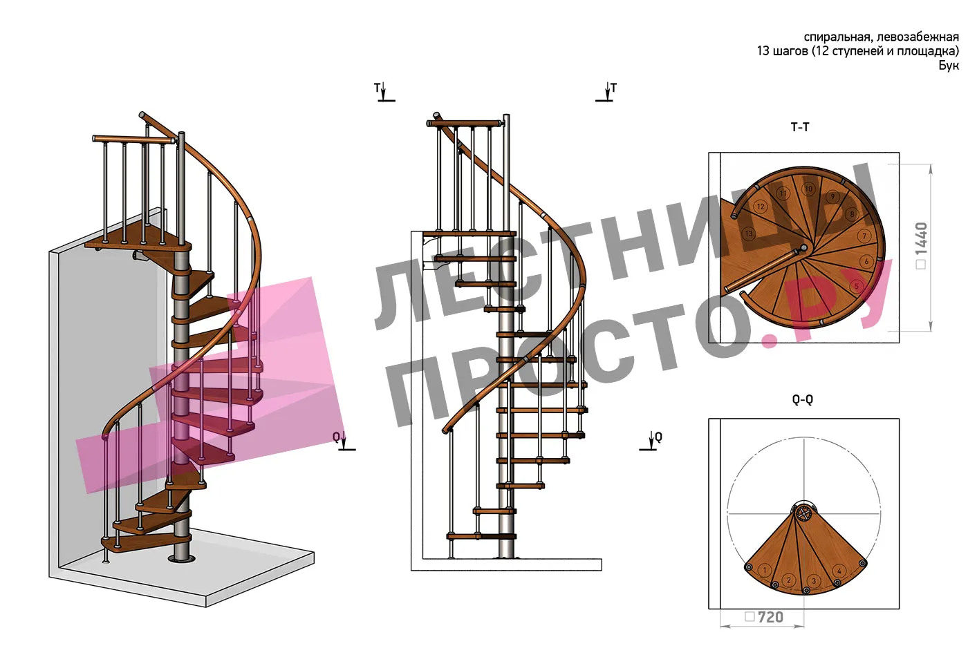 Решение о направлении поворота принимается при сборке лестницы - универсальная конструкция позволяет собрать правозабежную и левозабежную лестницы.