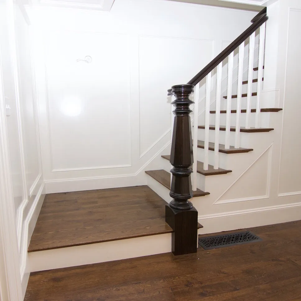 Опорный столб основной элемент ограждения лестницы, на который ложится нагрузка. Опорный столб должен быть зафиксирован максимально надёжно и тщательно скреплён с поручнем, также несущим нагрузку.